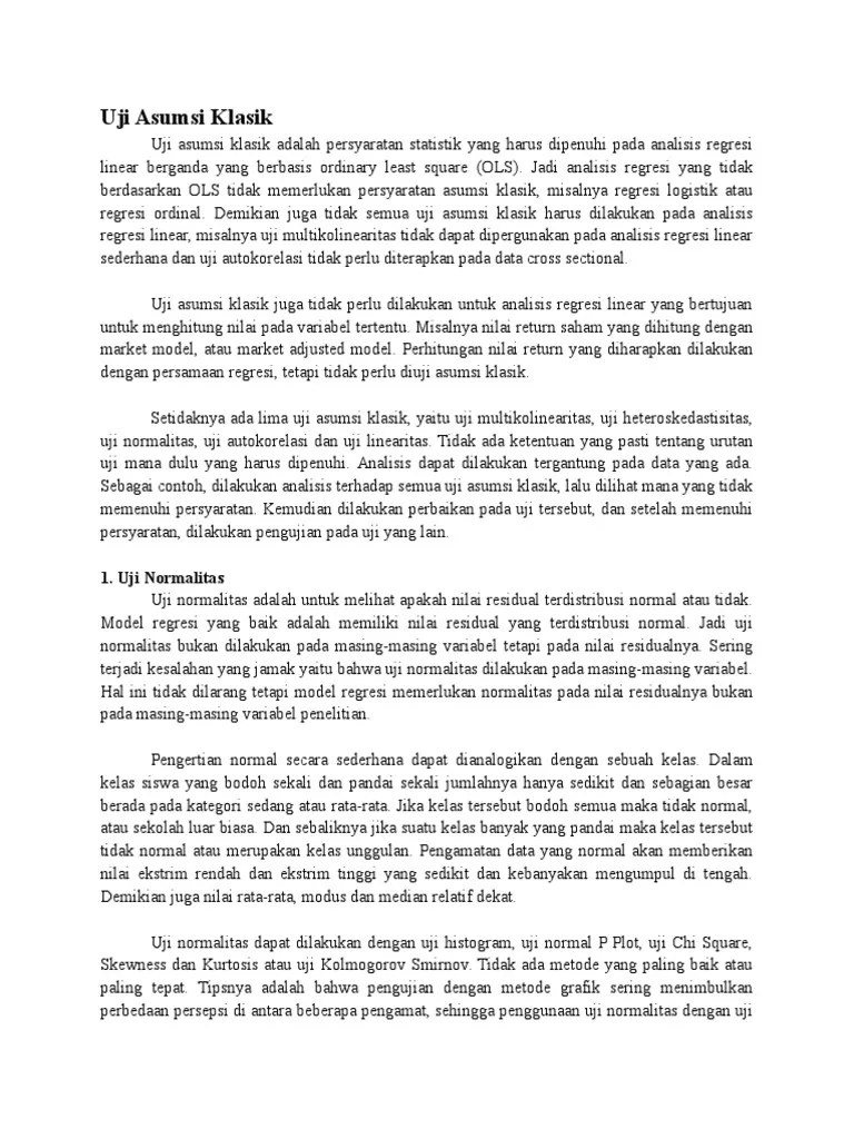 Contoh Soal Uji Asumsi Klasik - Uji Asumsi Klasik Oleh Dr Suliyanto Se Mm Ppt Download : Seperti yang kita ketahui, data panel merupakan gabungan antara data cross section dan data time series.seperti contoh data saya sebagai berikut: